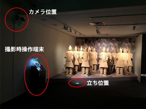展覧会「日中国交正常化50周年記念 兵馬俑と古代中国~秦漢文明の遺産~」(上野の森美術館)でDNP自動撮影システムが採用されました。展示と一緒に撮影できるスポットを2つ設け、兵馬俑の隊列の中にいるような写真が撮影できました。海外からの観光客も多く来場され、観光の記念に撮影される方もいらっしゃいました。