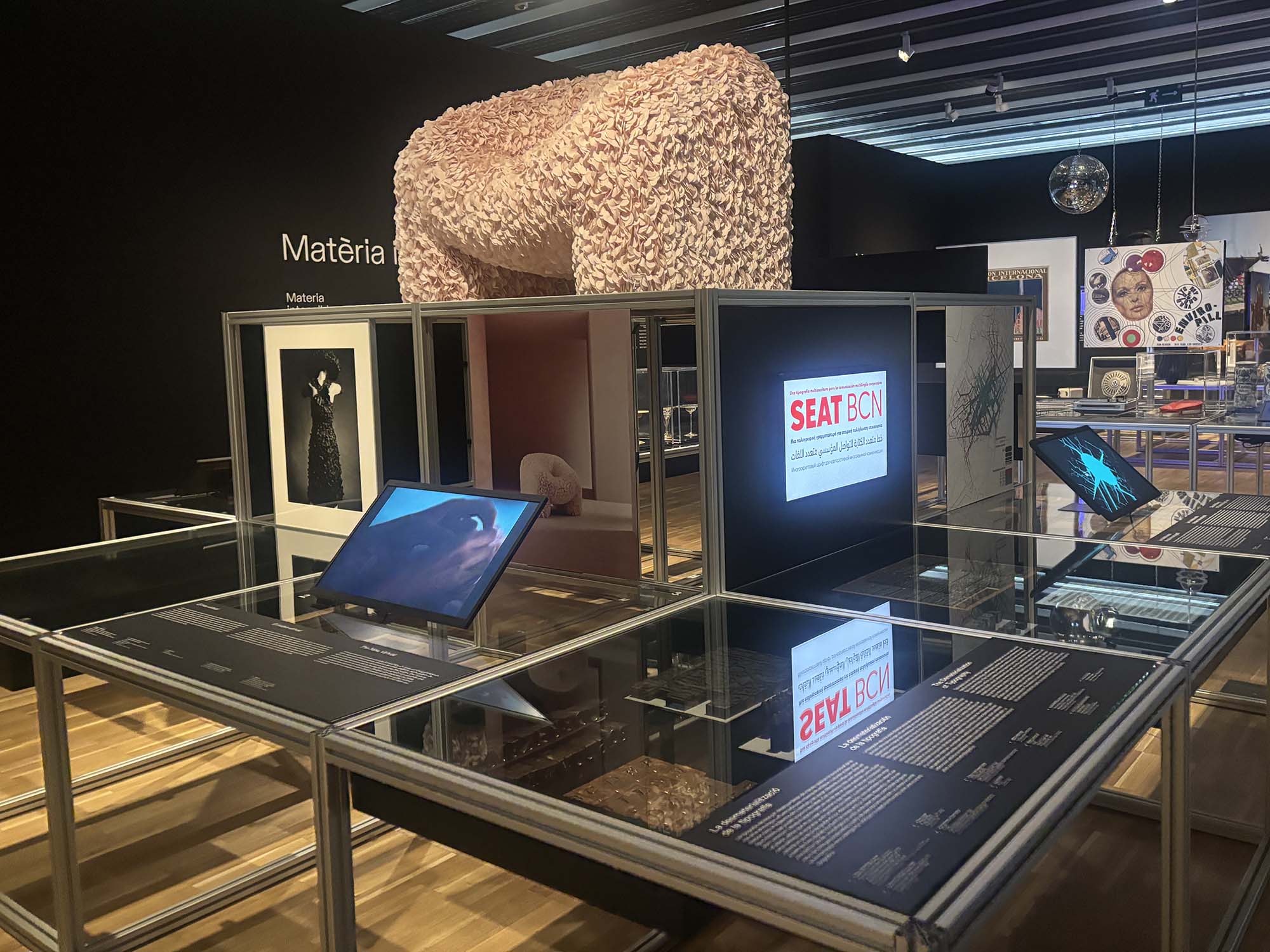 こちらはDHUB. Barcelona Design Centerに訪問した際に開催されていた展示「Matter Matters」の写真です。The Hidden Fingerprintというテーマでは、テクノロジーの進化ならびに、脱酸素化など環境に配慮した製品における、素材の選択とそれによって世界にどのような影響を及ぼすのか、といったことにフォーカスしています。この写真は、物理世界とデジタル世界の融合、3Dモデリングや人工知能により生み出されたプロダクトデザインです。