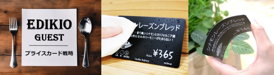 Edikio Guestが採用しているプラスチック(PVC)カードは、油汚れも拭くだけで落とせ、水洗いも可能です。常に清潔で見栄えの良いカードを維持できるため、お客様への印象が良くなるだけでなく、定期的な作り直しに伴う「資材コスト」や「手間のコスト」を抑えることができます。