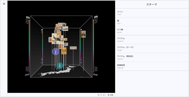 あらかじめ準備した「みどころキューブ」の教材。ジャパンサーチから資料を検索して作成。底面は日本地図、たて軸は「高評価~イマイチ」という軸で、歴史上の人物評価ができる基準とした。キューブ側面のテーマを「戦い」「交易」「文化」「ダイバーシティ」として、優れたリーダーを評価する観点として提示した。