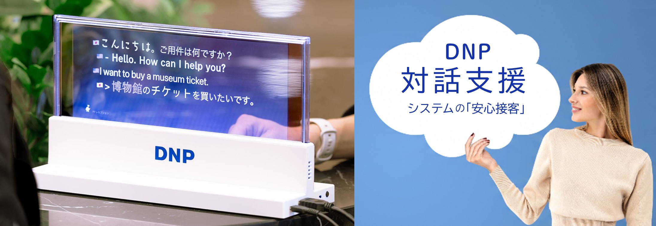 ※DNP対話支援システムの音声の文字化・翻訳技術は株式会社アイシンのYYSystemを利用しています。