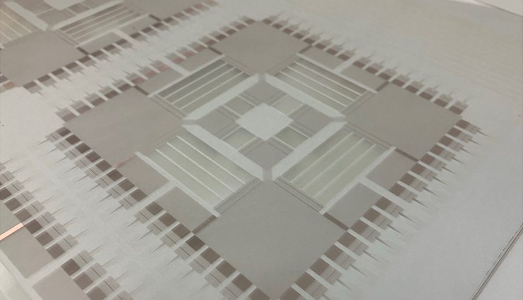 次世代半導体パッケージ向けに、高アスペクト・狭ピッチのTGVガラスコア基板と配線付きガラスコア基板を展示いたします。