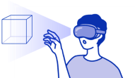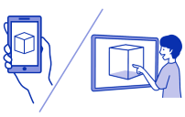 バーチャルにキューブの内側に入り込み、情報に触れたり移動するMR(複合現実)体験を提供することができます。