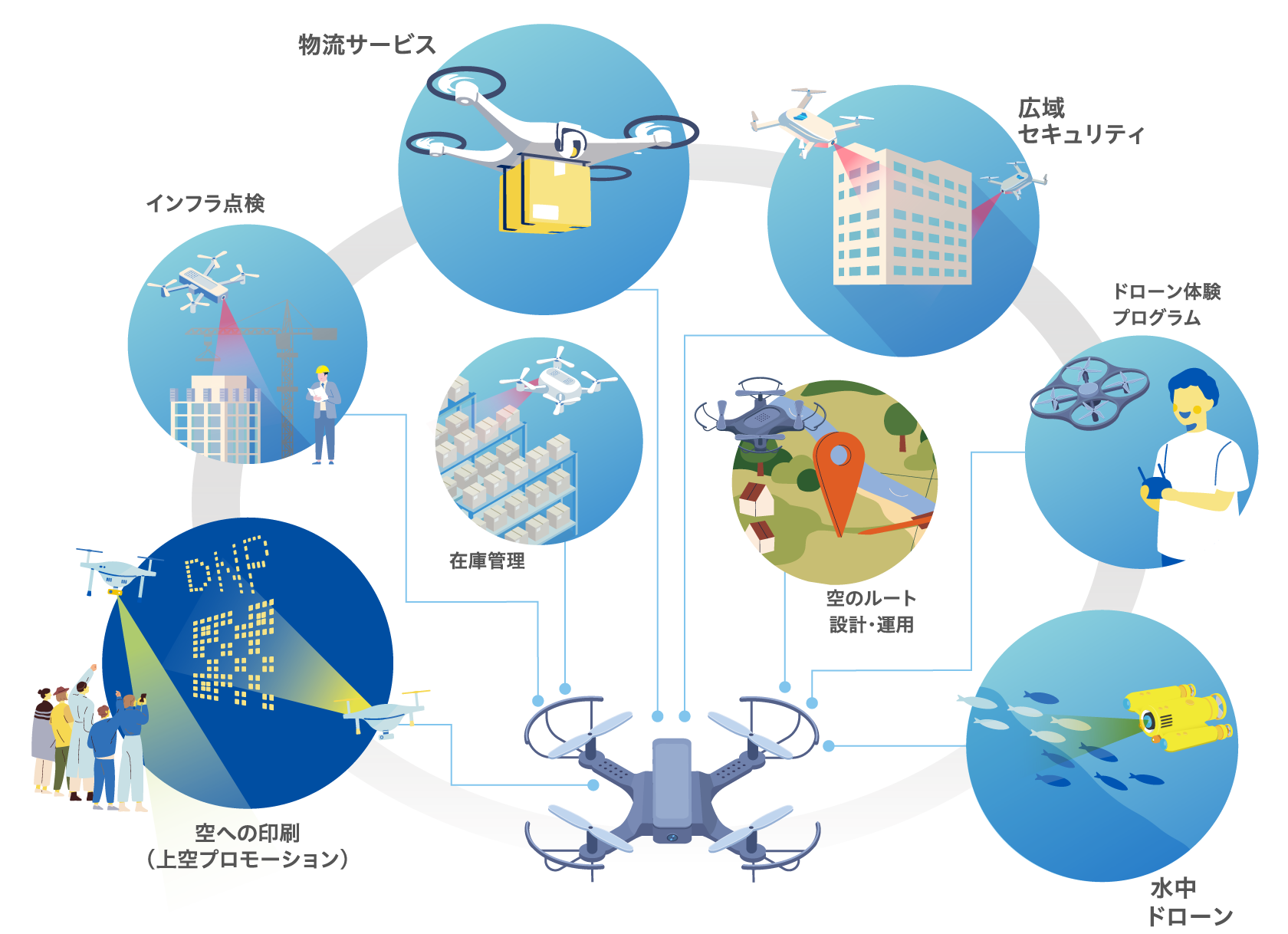現在、 DNPにはドローンに関する専門的な資格を有した社員が在籍しており、多様化するニーズへの対応を図っています。また、独自の技術やアイデアを持つ企業とのパートナーシップを通じて、ドローンの普及を促進するプラットフォームの構築に取り組んでいます。