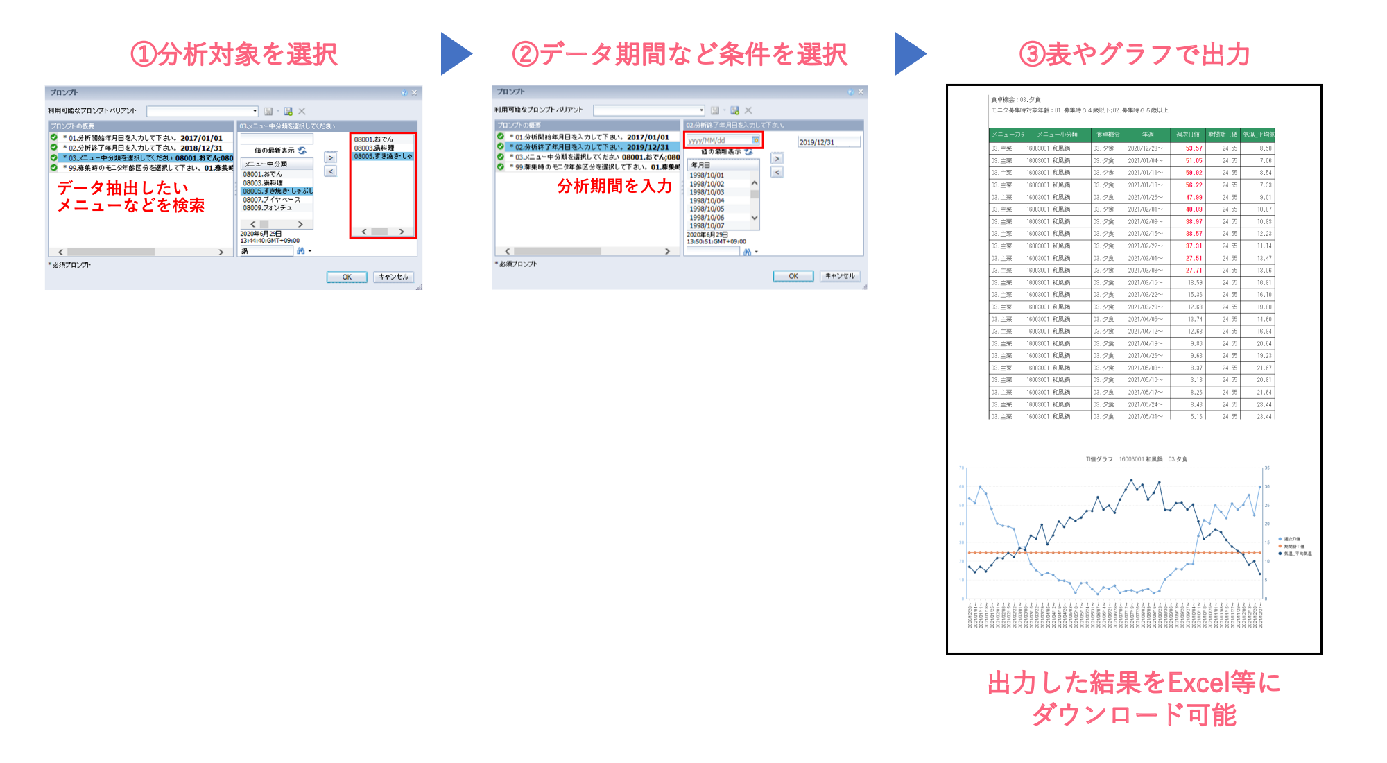 企業の想定と実際の消費(使用メニューや平均使用量)のギャップをなくすことで、よりニーズに合った商品の開発に活用できます。