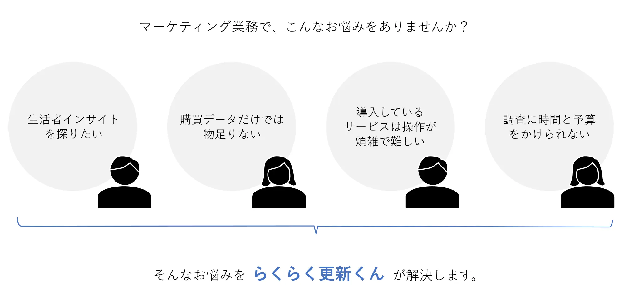 「食MAPサブスクサービス らくらく更新くん」とは、食MAPから欲しい食卓データを簡単に抽出しご活用いただけるサービスです。無駄なく欲しい食卓データのみをご自身で簡単にWeb上からデータ抽出でき、ご要望に合わせたカスタマイズ、リーズナブルな価格での提供が可能です。