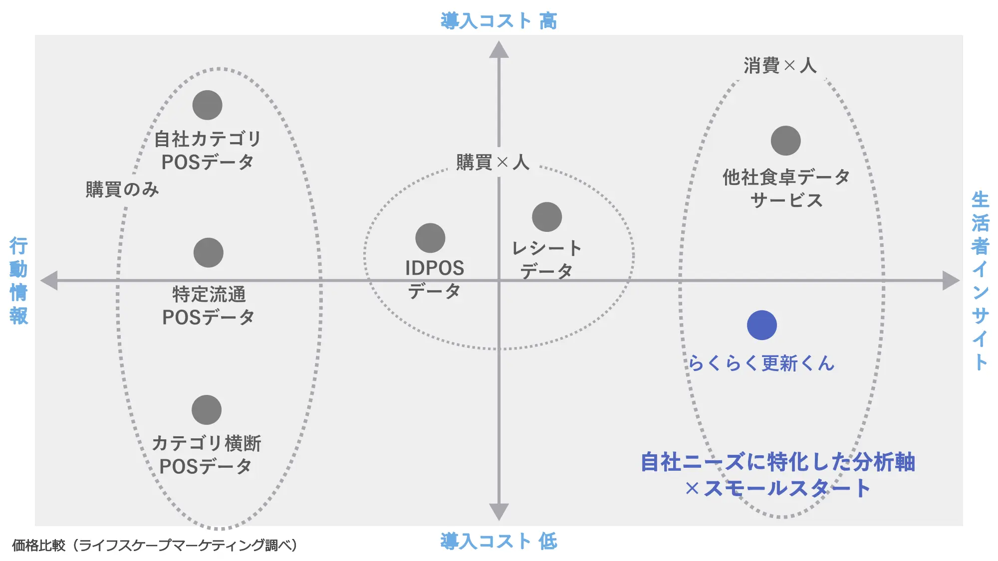 採用理由:競合が食卓データを持っており、自社でも必要ではないかという声が以前からあった。他社サービスを継続的に検討しているなかで、本サービスは対象のカテゴリを絞ることで導入しやすい価格設定だったため。