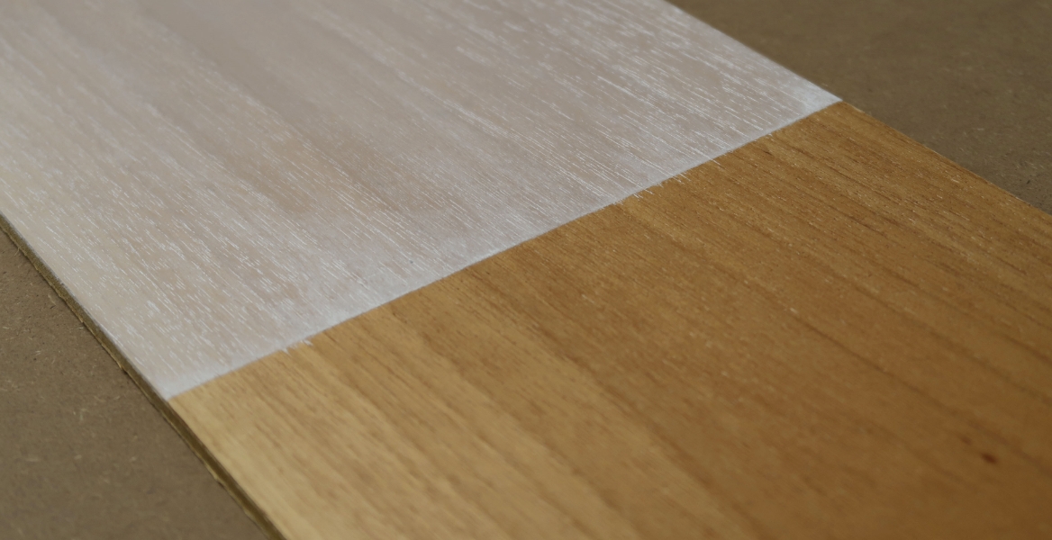 欧州建材市場で最近目にする機会が増えているのが、チェスナット、エルム、そしてヒッコリーです。ナチュラルではっきりした模様が強いヒッコリーですが、もう一押し表情が欲しいと思い、うっすらとした白塗装を施しました。塗装と樹種がマッチしたときの嬉しさはひとしおです。