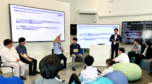 これらのテーマに基づき、展示と並行してステージ企画を3回実施。DNPに加え共創パートナーにも登壇いただき、それぞれのテーマに関するトークセッションを行いました。セッションでは各者とDNPの技術を組み合わせることでどのような未来が実現できるかを語り合いました。「微生物発電からエネルギーを生み出せるか」のステージ企画では、まだ本格的には社会実装されていない、水質浄化しながら発電することができる「微生物電池」を皆さんに知っていただくことで、実用化できた時にはよりよい社会になっていくことを実感していただくことができました。