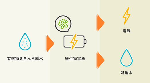 水を浄化しながら発電する環境浄化型微生物電池の仕組み