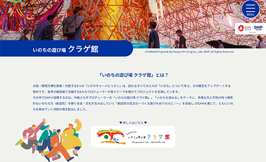 DNPは、ゴールドパートナーとして参画した「いのちの遊び場 クラゲ館」をはじめ、未来のまなびと出合うメタバース空間「きづきの杜」、DNPが描く自然エネルギー社会をテーマにしたFLE(フューチャーライフエクスペリエンス)展示、産官学による新たな共創を推進した「TEAM EXPO 共創プログラム」など、万博をきっかけにさまざまな企業や団体とのコラボレーションに取り組みました。本サイトでは、これら一つひとつの挑戦の背景や経緯、成果、反響などを紹介しています。いずれも、これまでにない発想で生まれた革新的な共創の取り組みや新たな展開であり、DNP社員一人ひとりが社内外のパートナーと対話を重ね、当社のソリューションを駆使し、協働し、挑戦することで成し得たプロジェクトばかりです。