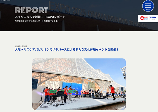 DNPが、大阪・関西万博でどのような業務や企画に挑戦し、これからの未来にどのような想いを抱いて社会に貢献していくのか。そんな姿が垣間見える、読み応えのあるレポートの数々です。現場で感じたリアルな驚きや感動と、DNPが見つめる未来を感じていただけるコンテンツになっています。
