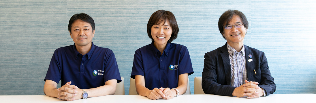 「REBORN」をテーマに、未来のヘルスケアや都市生活を体感できる大阪ヘルスケアパビリオン。豊富な展示と、来場者一人ひとりに合わせた体験ができる点で人気を集めるとともに、官民が共同で出展するという取り組みも注目されています。このパビリオンを推進・運営するのは公益社団法人2025年日本国際博覧会大阪パビリオン(以下:大阪パビリオン)。DNPはこの取り組みに協賛し、社員1名が職員として出向しています。今回は、大阪パビリオンの理事と運営課長、そしてDNPから出向している社員の3名に、組織の枠を超えた協働について聞きました。