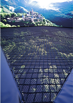 壁・天井・床にルクセンブルクの映像が流れ(写真上部)、没入体験ができる展示。DNPはこの映像装置を支える架台(写真下部)を施工