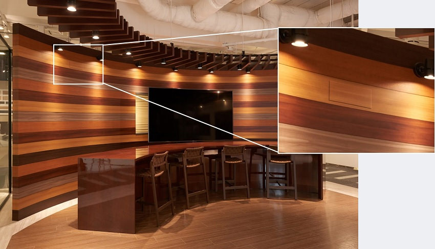 DNPが印刷プロセスで培った高精細なデータ作成や製版の技術、精密塗工技術等を活用。木や石、金属などの素材の魅力を表現します。基材であるアルミの良さも活かしたDNP独自の製品で、心地よく機能的な空間を創出します。